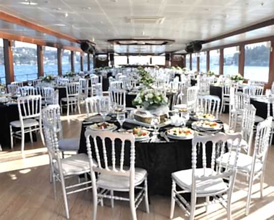 Yemekli 200 kişi, Kokteyl 250 kişi yolcu kapasiteli lüks sınıfı davet teknesi.
