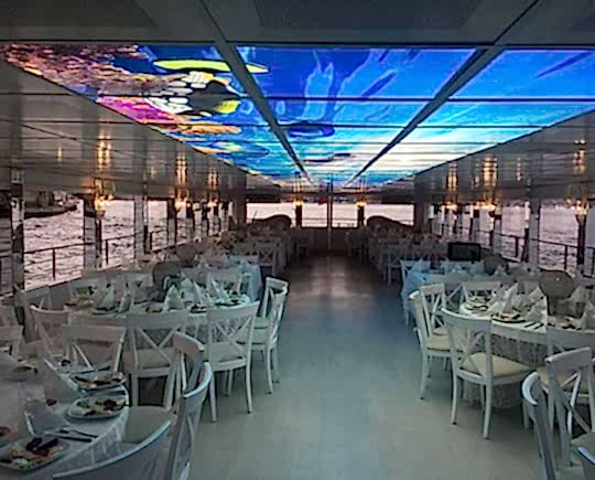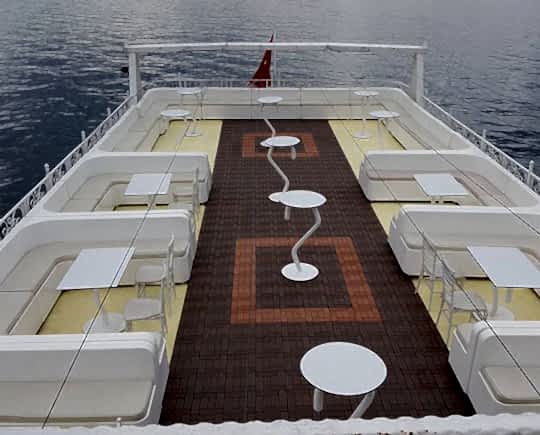 Yemekli 100 kişi, Kokteyl 150 kişi yolcu kapasiteli ekonomi sınıfı davet teknesi.