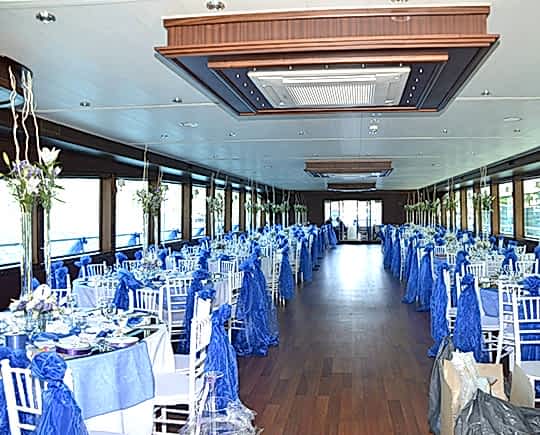 Yemekli 200 kişi, Kokteyl 250 kişi yolcu kapasiteli lüks sınıfı davet teknesi.