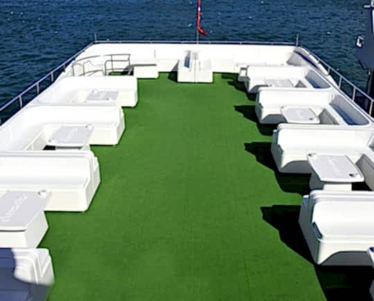 Yemekli 80 kişi, Kokteyl 120 kişi yolcu kapasiteli ekonomi sınıfı davet teknesi.