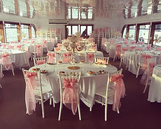Yemekli 80 kişi, Kokteyl 120 kişi yolcu kapasiteli ekonomi sınıfı davet teknesi.