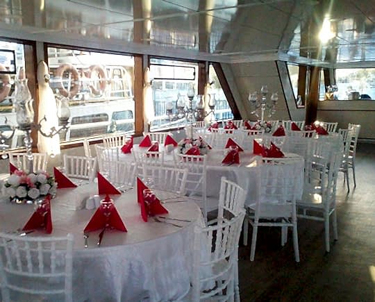 Yemekli 200 kişi, Kokteyl 250 kişi yolcu kapasiteli lüks sınıfı davet teknesi.