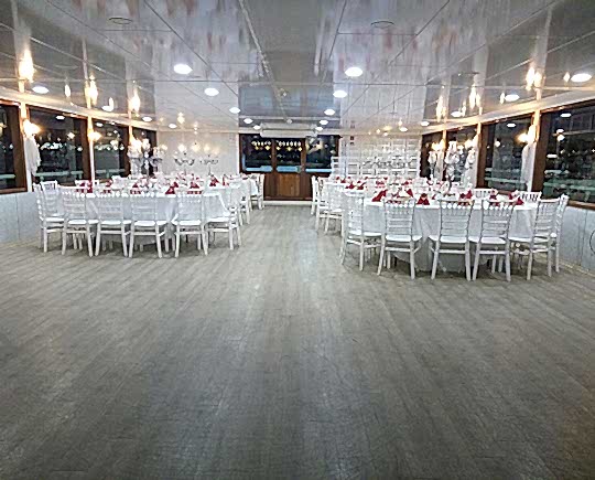 Yemekli 300 kişi, Kokteyl 400 kişi yolcu kapasiteli lüks sınıfı kiralık davet teknemiz.